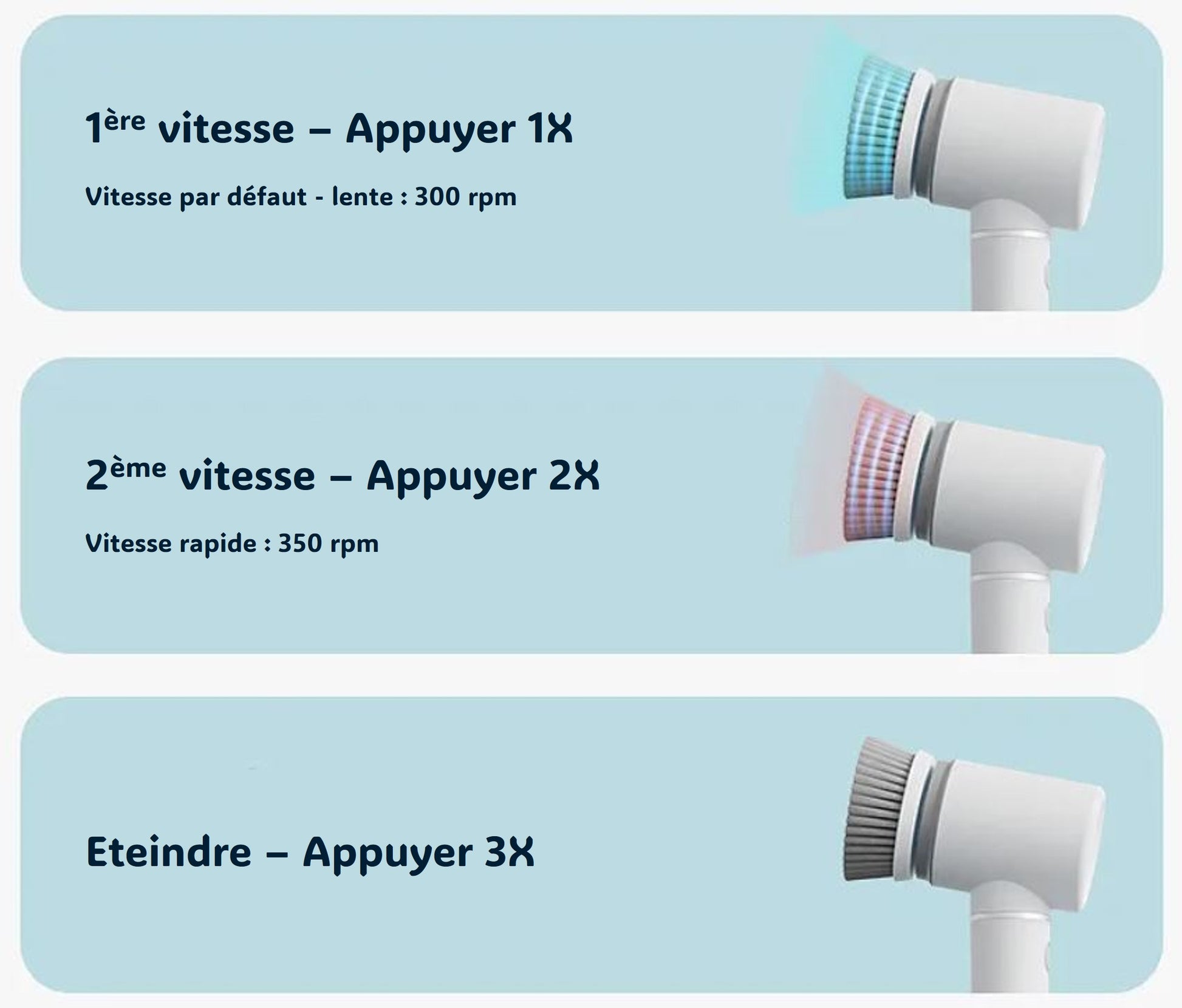 Avec ses deux niveaux de vitesse, notre 'Eli-Brush® Intermédiaire' vous permet de venir à bout des taches tenaces et sales en un clin d'œil. Résultat impeccable garanti à chaque utilisation.
